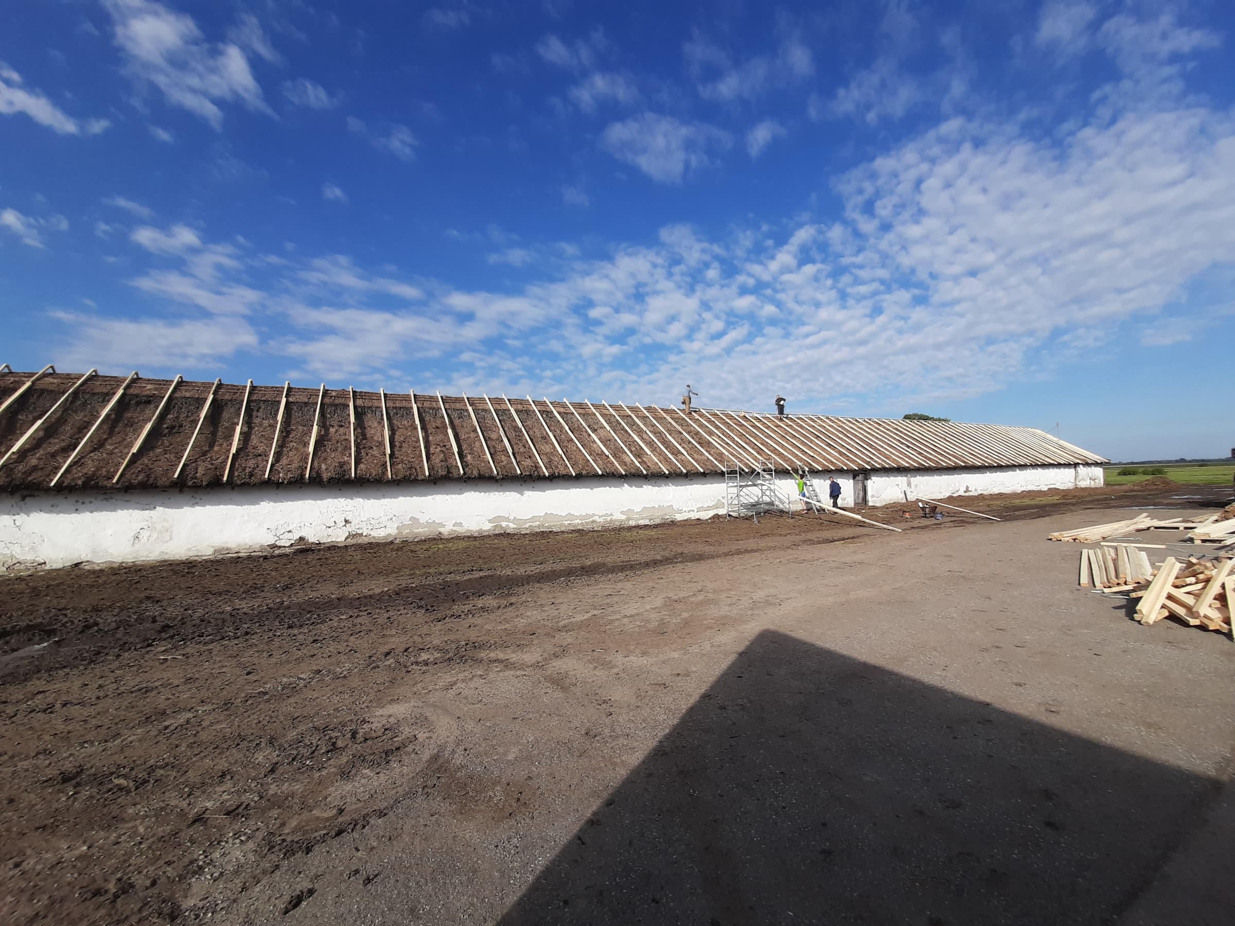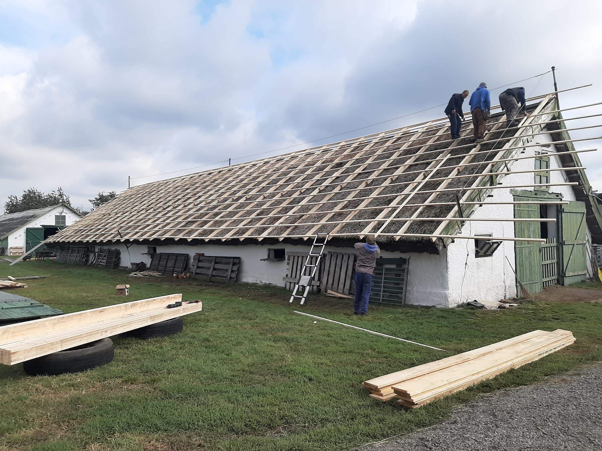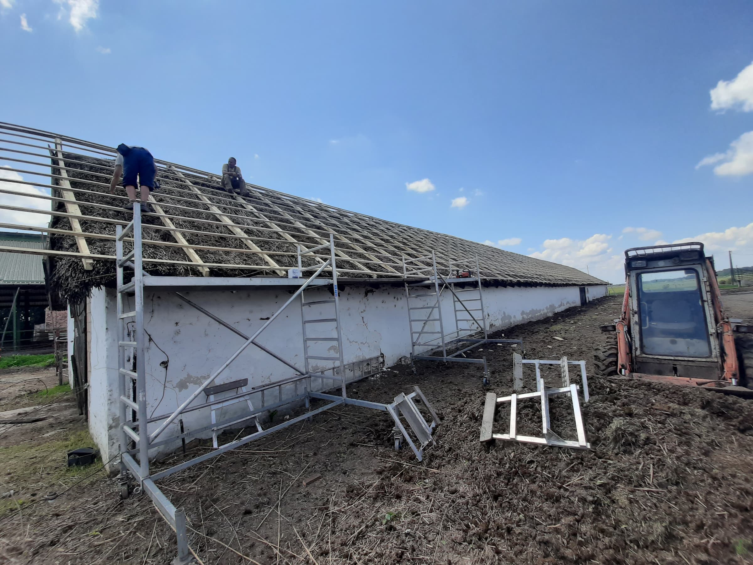 A kivitelezés során a tetőt bepárnafázzuk, vagyis egy új, könnyű tetőszerkezet kerül a meglévő nádtető fölé.