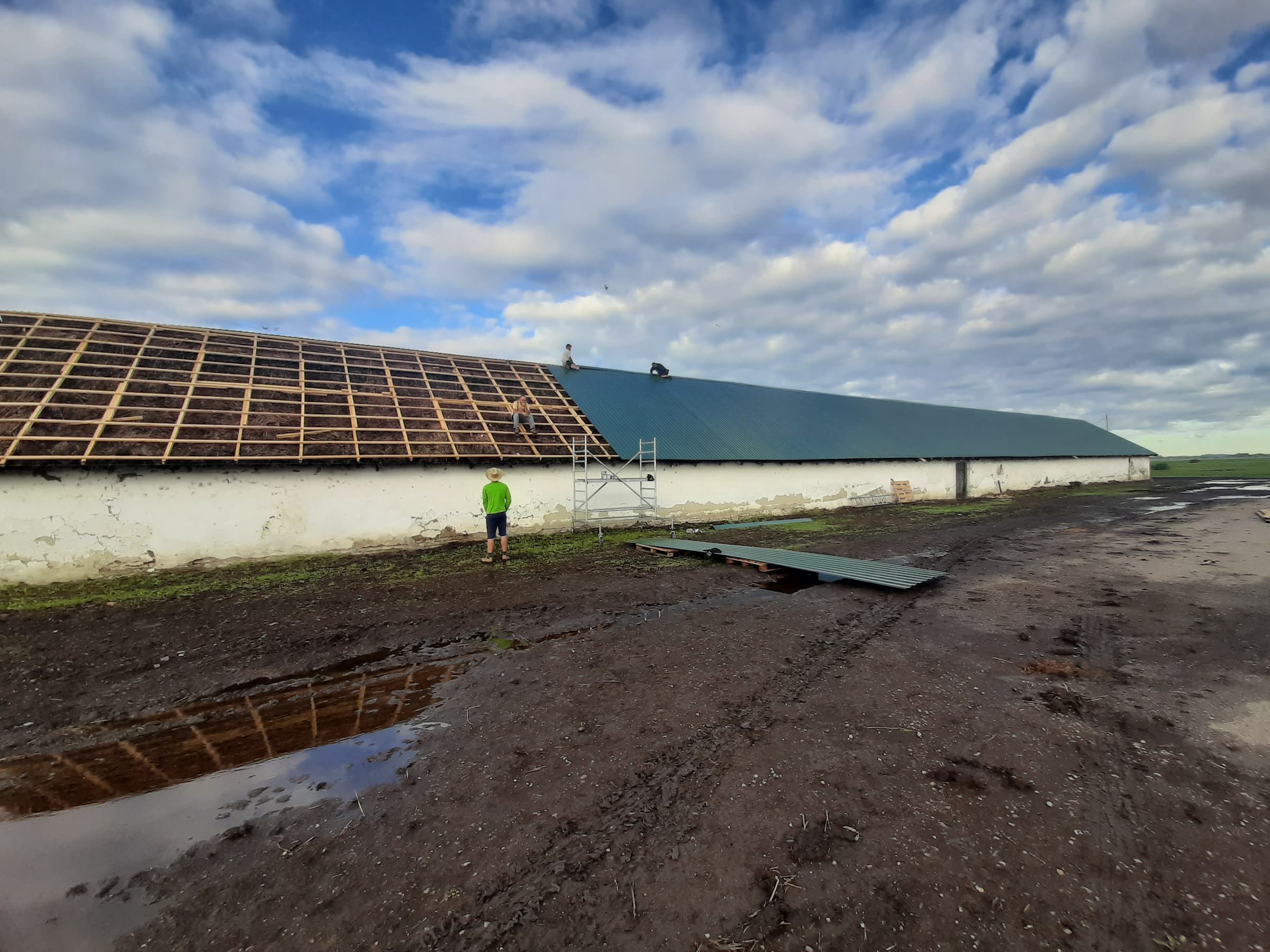 A meglévő javíthatatlan nádtetőre készített lemezfedés egy kifejezetten költséghatékony megoldás, amelyet akkor alkalmazunk, amikor az épület tulajdonosa nem szeretné elbontatni a régi nádfedést, nem akar új nádtetőt, cserépfedést vagy komplett tetőcserét, hanem a lehető legolcsóbb, mégis stabil fedést keresi.